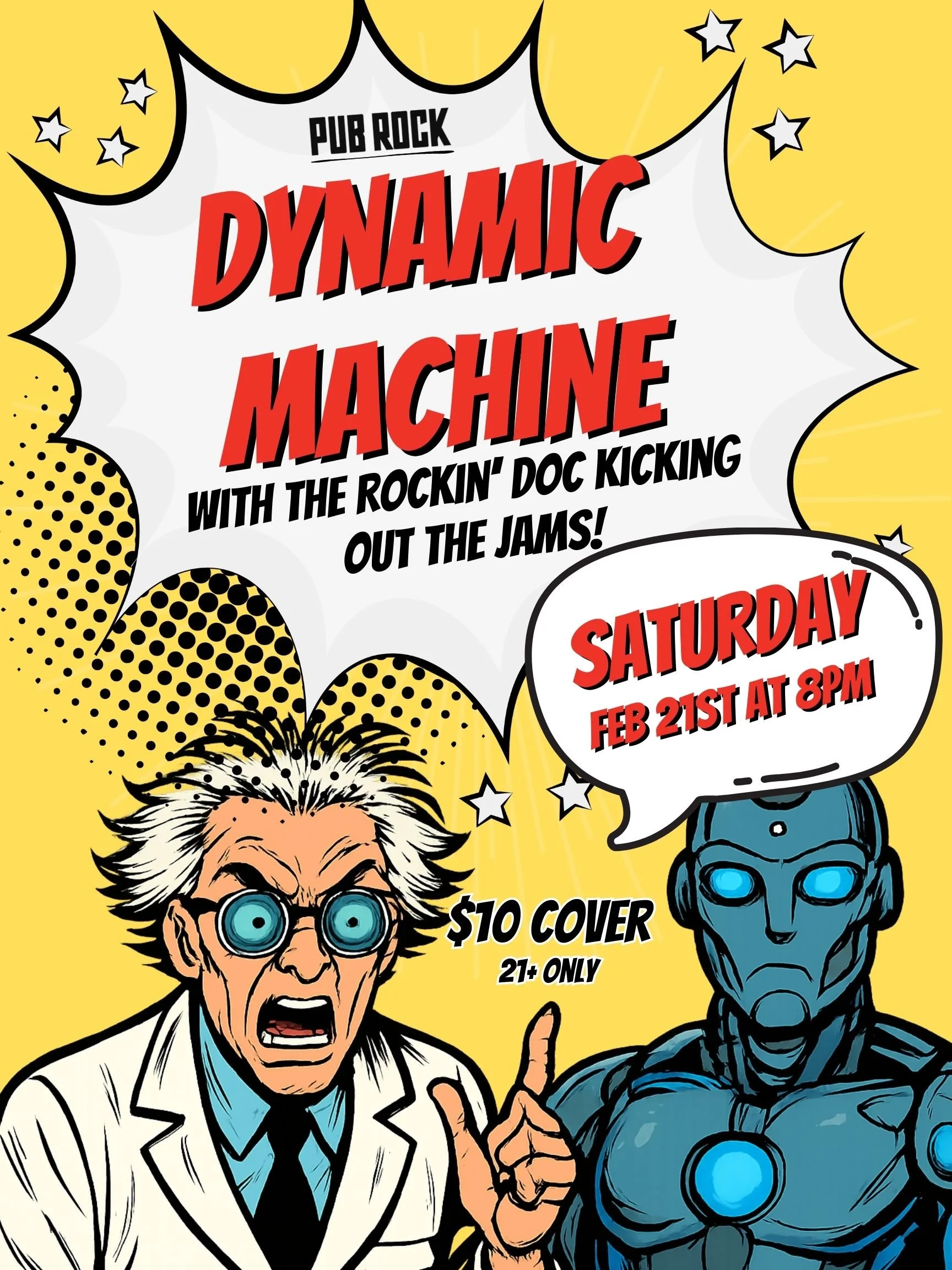 Join us at Pub Rock Live on February 21st as we welcome Dynamic Machine to the big stage! They’ll be joined by Rockin’ Doc for a night dedicated to everything we love about rock: loud riffs, local talent, and great vibes.